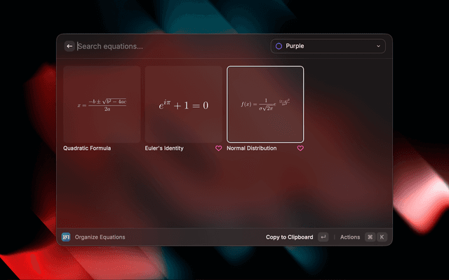 A LaTeX-friendly clipboard tool for creating, organizing, and copying equations.