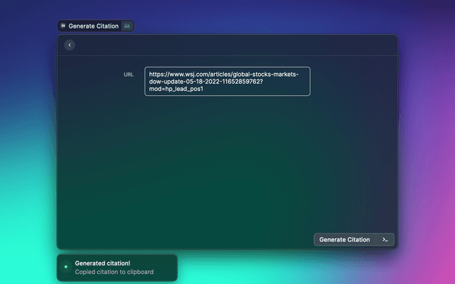 Generates MLA, APA, Chicago, or Harvard style citation