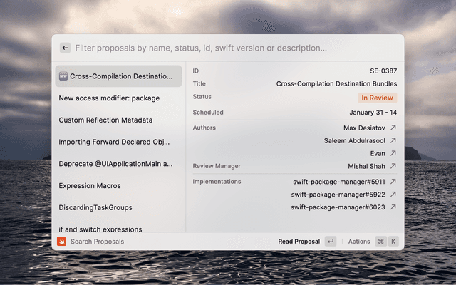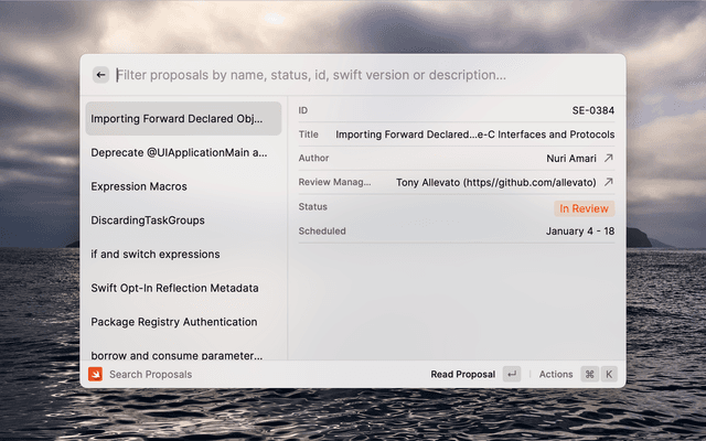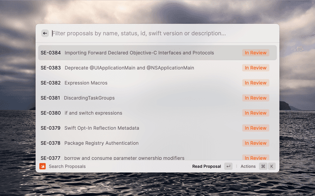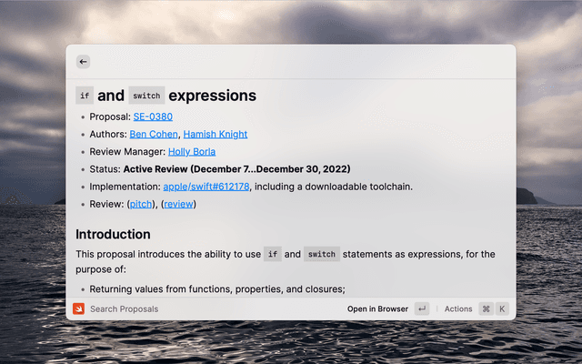 Search and see details for the Swift language proposals from swift evolution web page https://apple.github.io/swift-evolution/