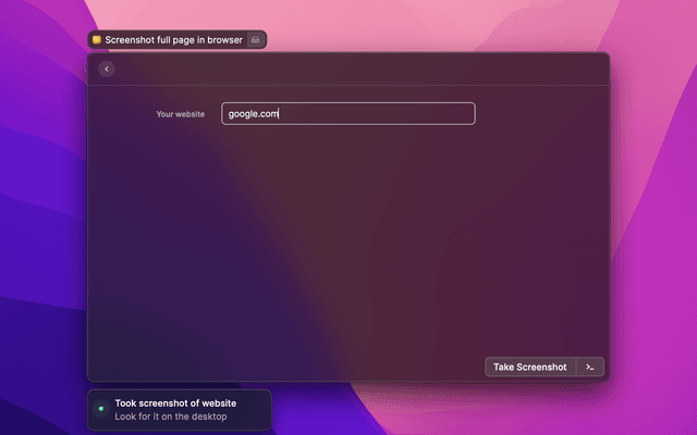 This extension allows you to quickly make a screenshot of the entire page of the site and save it to your desktop just by writing the address of the site.