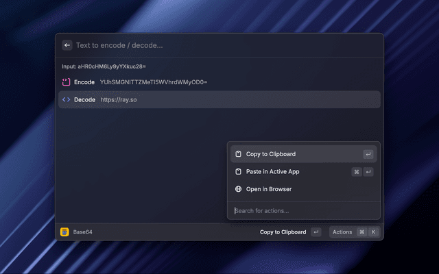 Quickly encode or decode base64 from the clipboard