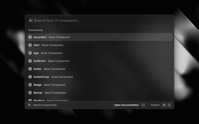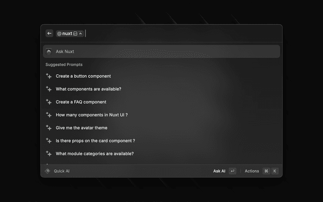- Direct Shortcuts: Access Nuxt docs, components, and modules search