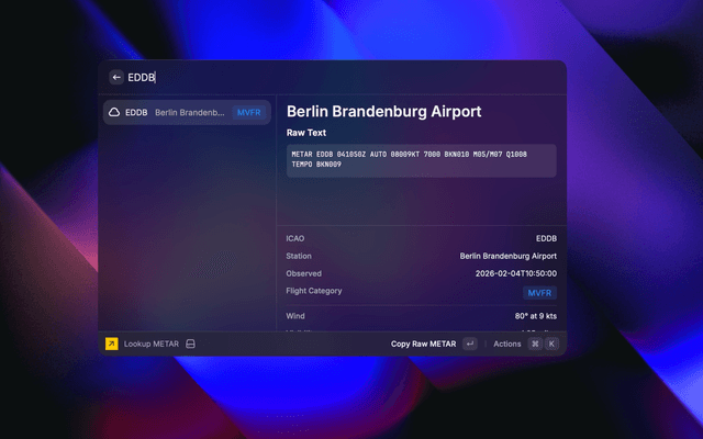 • Instant METAR Reports: Get up-to-the-minute decoded METAR data from the CheckWX API.