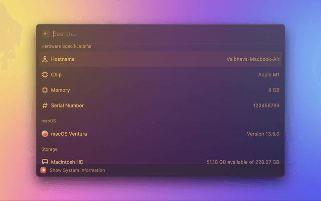 Get quick access to your system information so that you never have to open System Settings! You can access the following:
