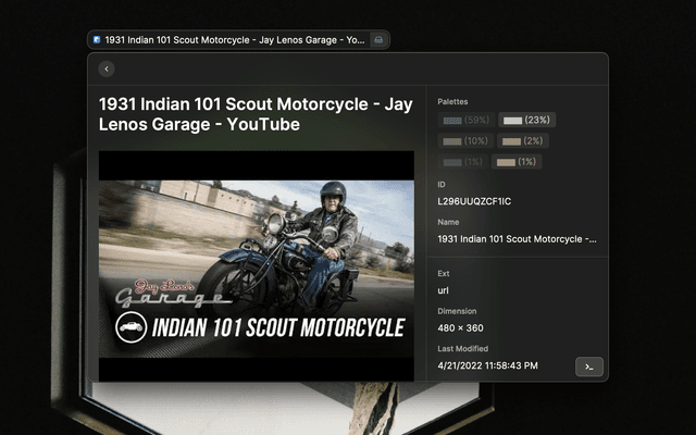 • Item Details - View detailed information including thumbnails, tags, folders, color palettes, and metadata