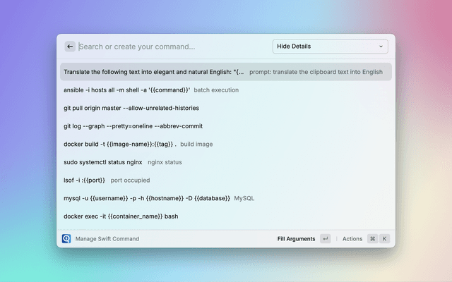 - Import aliases from your shell configuration files (supports .zshrc, .bashrc, and fish config)