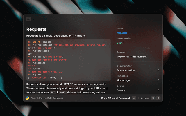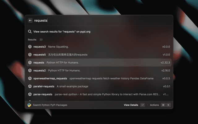 Search PyPI packages from Raycast and read all details.