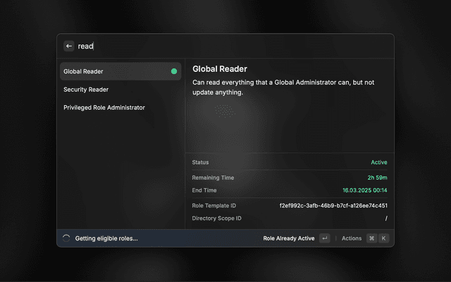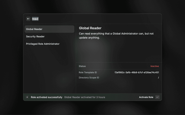 Activate Entra roles via PIM using Microsoft Graph API directly from Raycast.