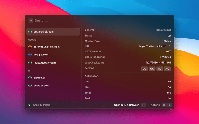 In order to make use of this extension, you'll need to enter the API key available within the Better Uptime dashboard.