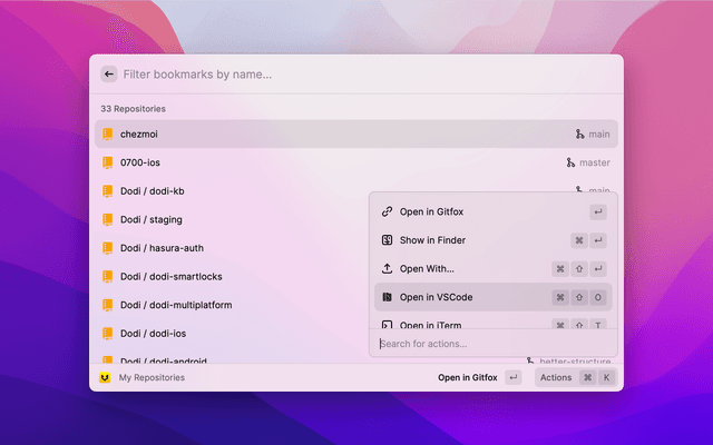 Work with issues, pull requests, manage workflows, search repositories and stay on top of notifications