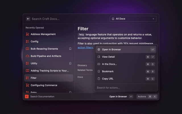 Search the official Craft CMS documentation, knowledge base, glossary, and plugin store.