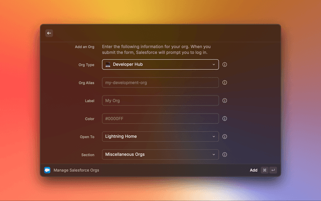 ⌘ NAdd a new Salesforce Org to your list.
