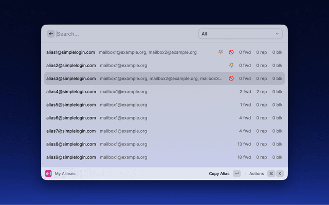Create and manage email aliases with SimpleLogin to protect your inbox from spam and trackers.