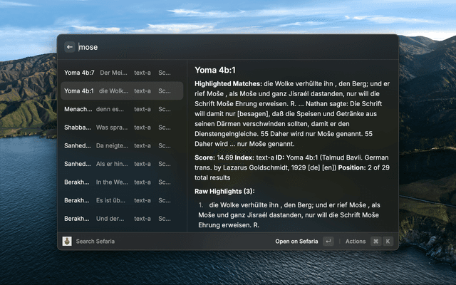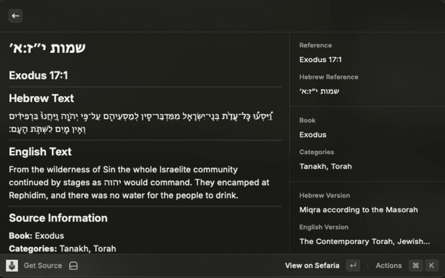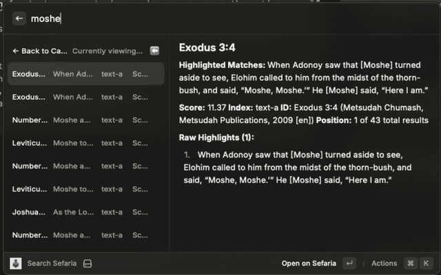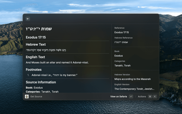 - Use ⌘+O to open the source directly on Sefaria.org for further study