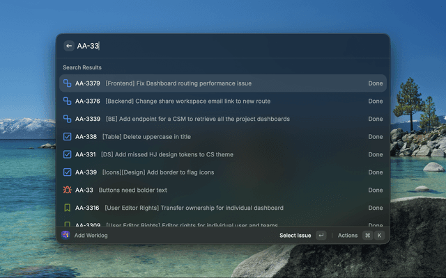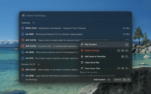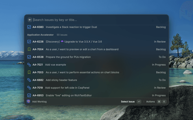• Add Worklog: Quickly log work hours to any issue with flexible duration formats (1h, 1h30m, 2h)