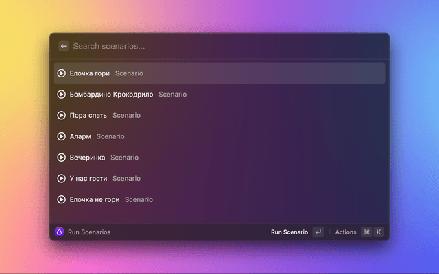 Control Yandex Smart Home devices and run scenarios from Raycast.