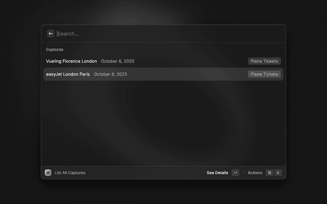 That's it! Your capture is now organized and searchable.
