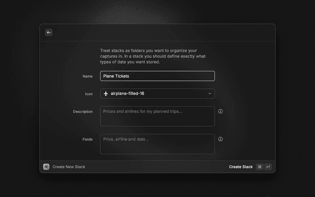 Think of stacks as smart folders that know exactly what to look for in your screenshots. Before you can capture anything, you need to create at least one stack.