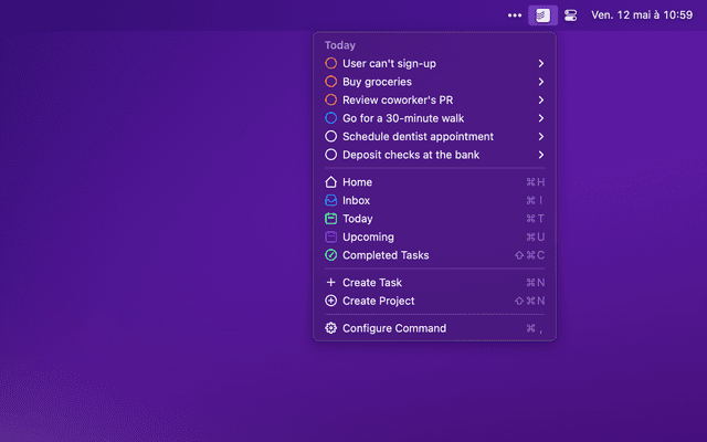 Check your Todoist tasks from within Raycast and quickly create new ones.