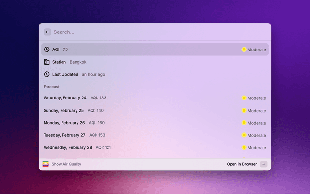 By default, the plugin fetches air quality data from the nearest station to your IP location by using a special station named "here".