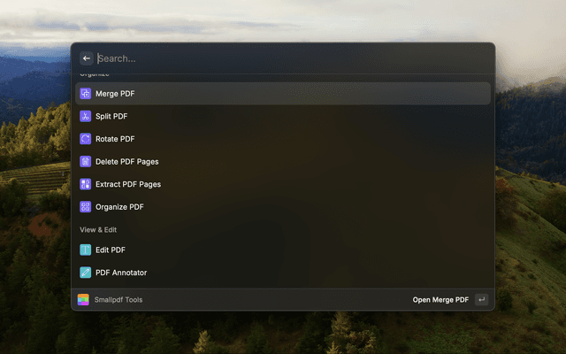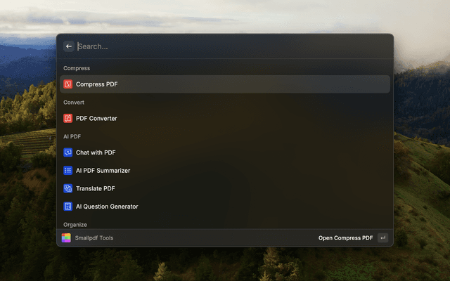 Quick access to all the Smallpdf tools