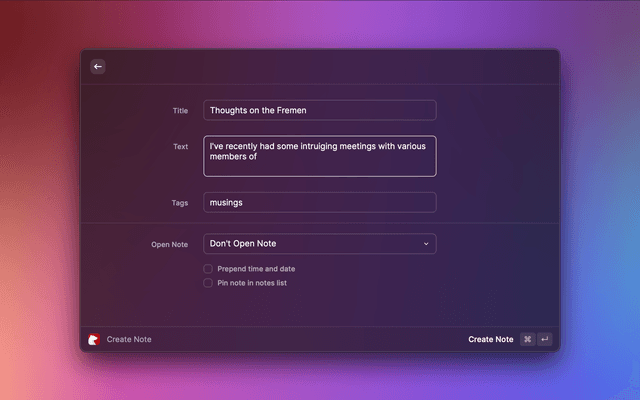• Preview note in Raycast with Cmd + P