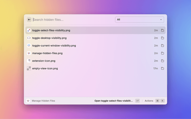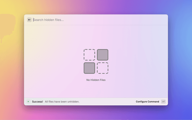 - 🌟🌟🌟But you can always use the shortcut " ⇧+⌘+. " or Raycast build-in Toggle Hidden Files command to see all system hidden files.