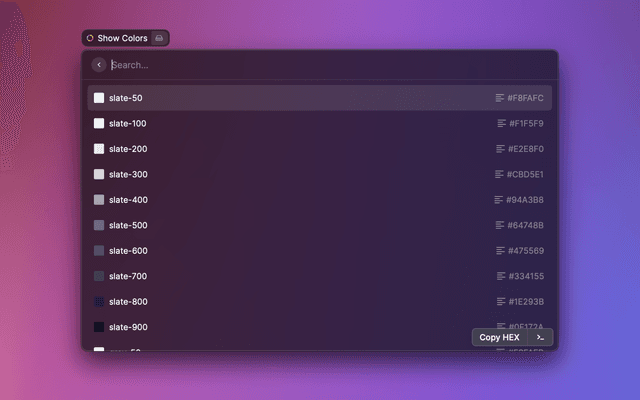 Search Tailwind CSS colors to use the HEX or RGB color value in projects that don't use Tailwind CSS classes.
