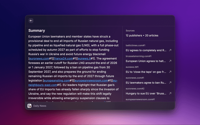 Read and explore Kagi News articles and sources seamlessly in Raycast.