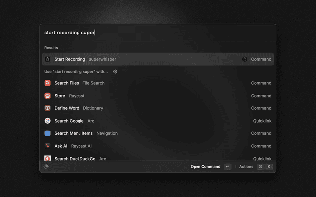 Requires the installation of superwhisper. Go to https://superwhisper.com to download & use for free.