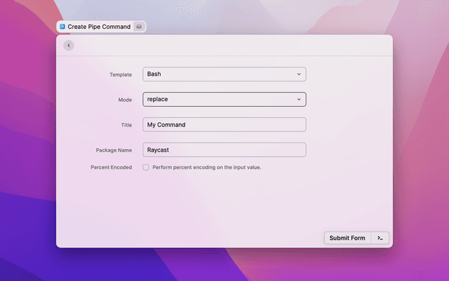 Use the Create Script Command command to generate a new script command, then change the @raycast.mode value to pipe.