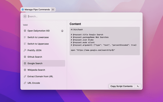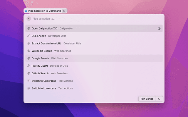 Pipe your selection or clipboard to custom scripts defined in any language.