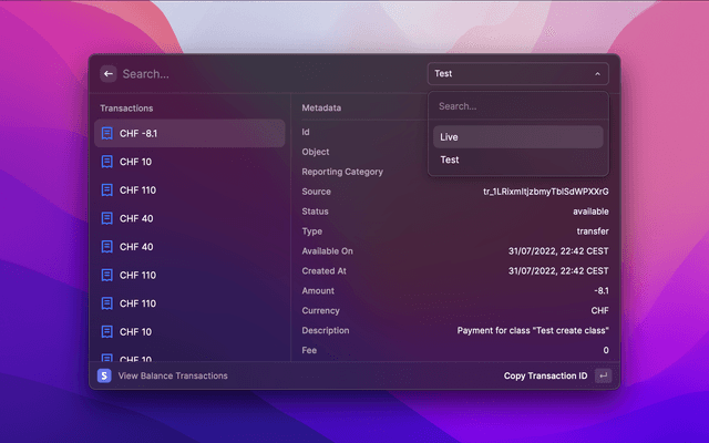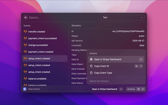 Quick Stripe dashboard functionality and quick link access