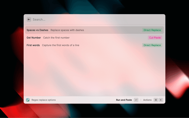 Replace the current selection or clipboard entry using custom regex entries.
