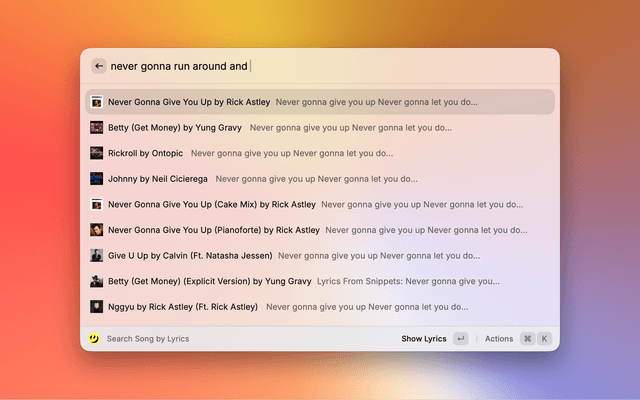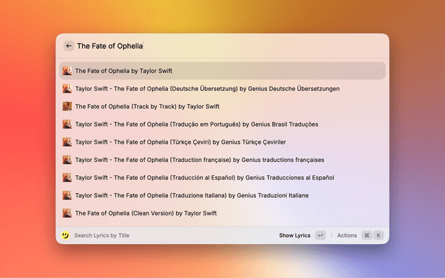 Search by song title to instantly view lyrics, or enter remembered lyrics to quickly find the song's title, utilizing the Genius Lyrics API.