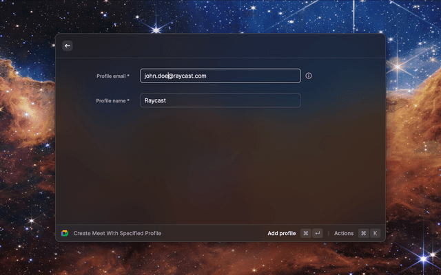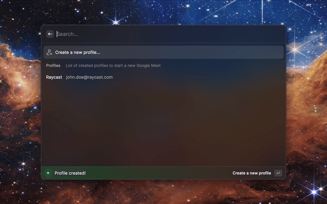 Start a Google Meet directly from Raycast
