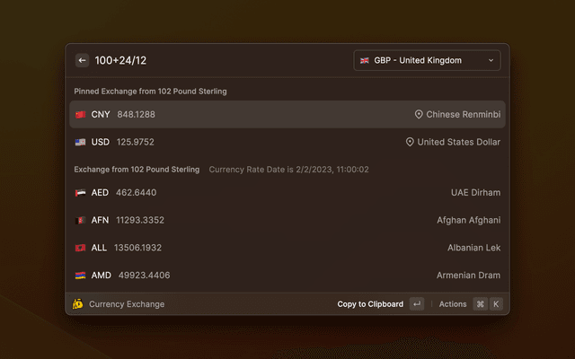 • You can type like 12 usd in gbp to show the currency exchange result.